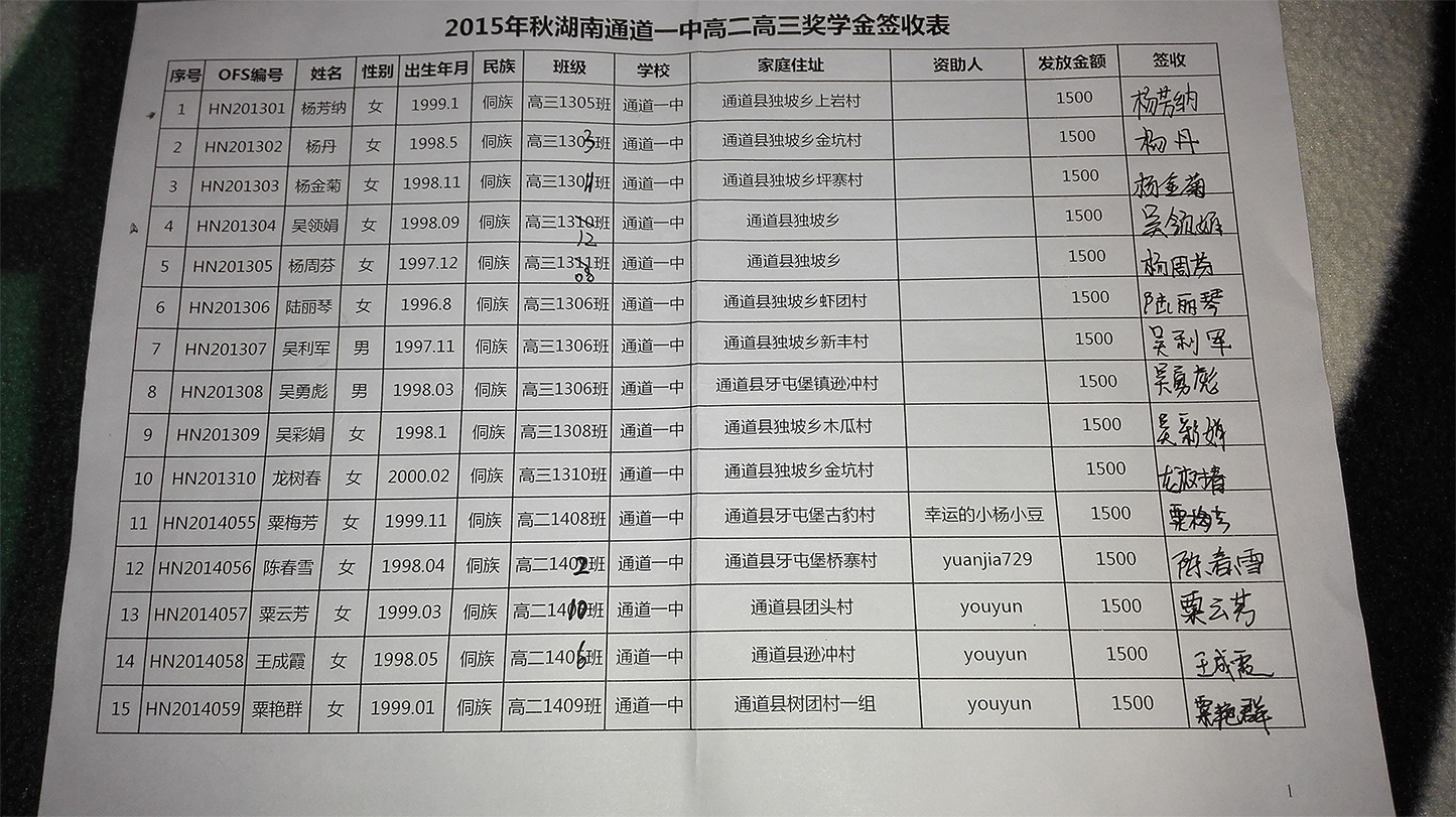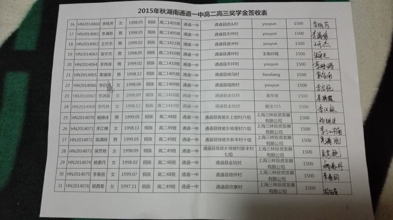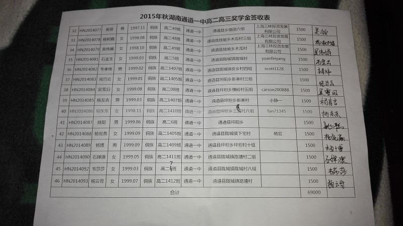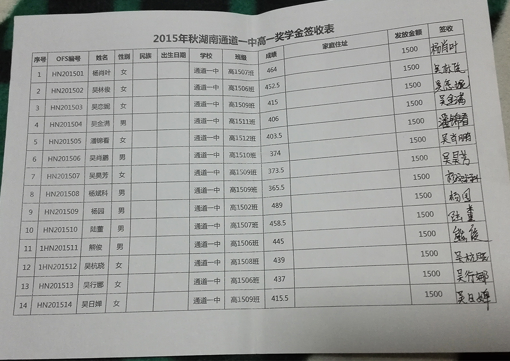[奖学金]2015年秋季湖南通道县高中生奖学金发放公示 [复制链接]