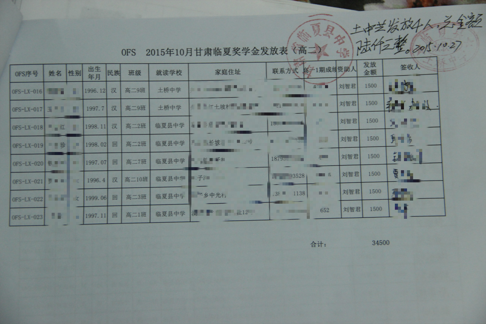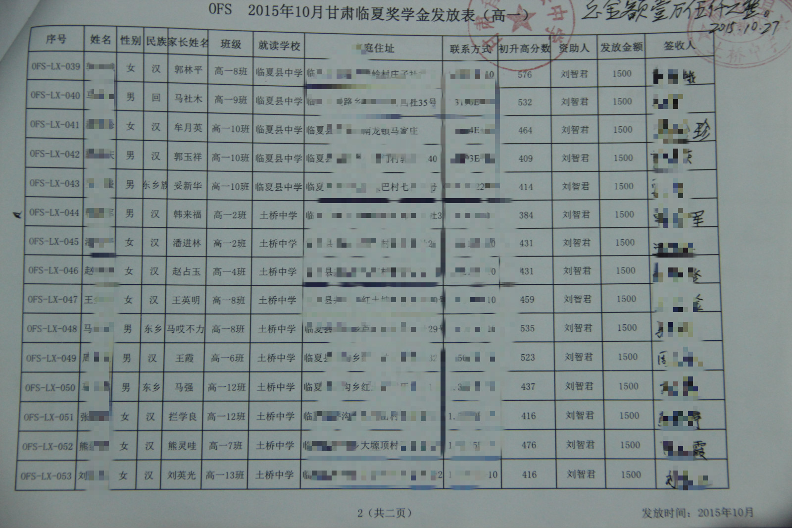 2015年10月甘肃省临夏县及积石山县高中生奖学金发放公示