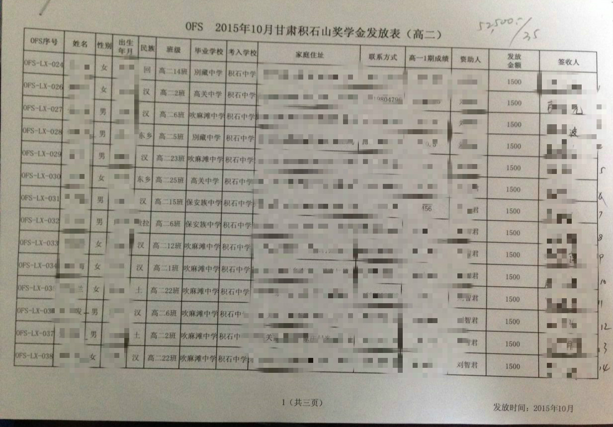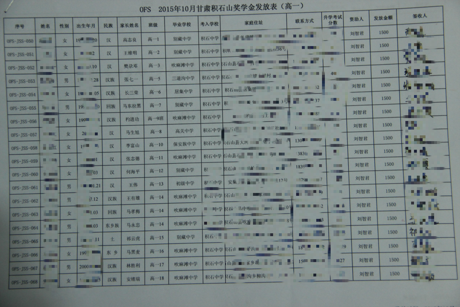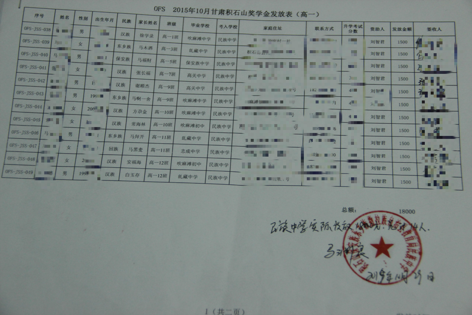 [公 示]2015年10月甘肃省临夏县及积石山县高中生奖学金发放公示 [复制链接]