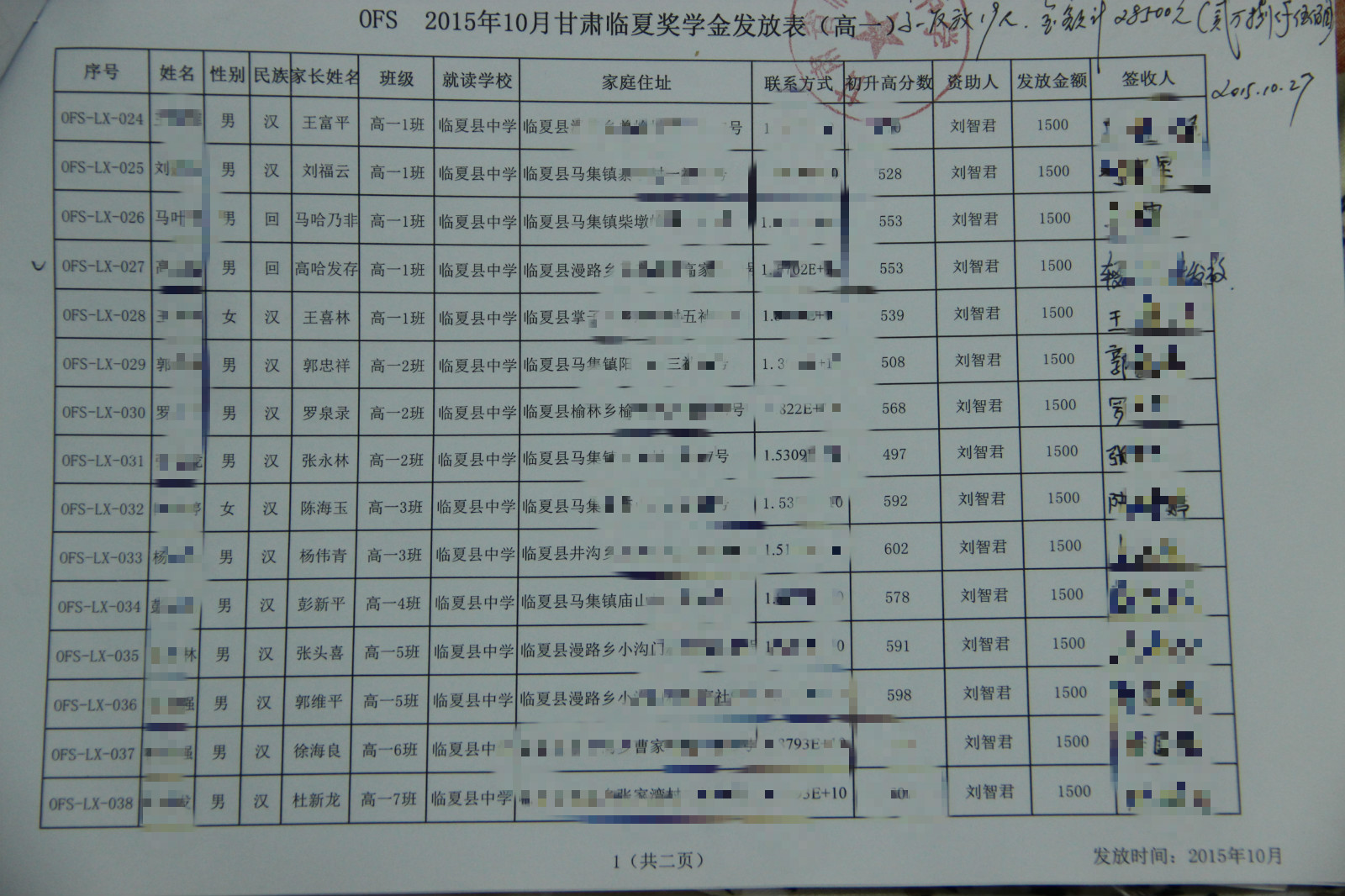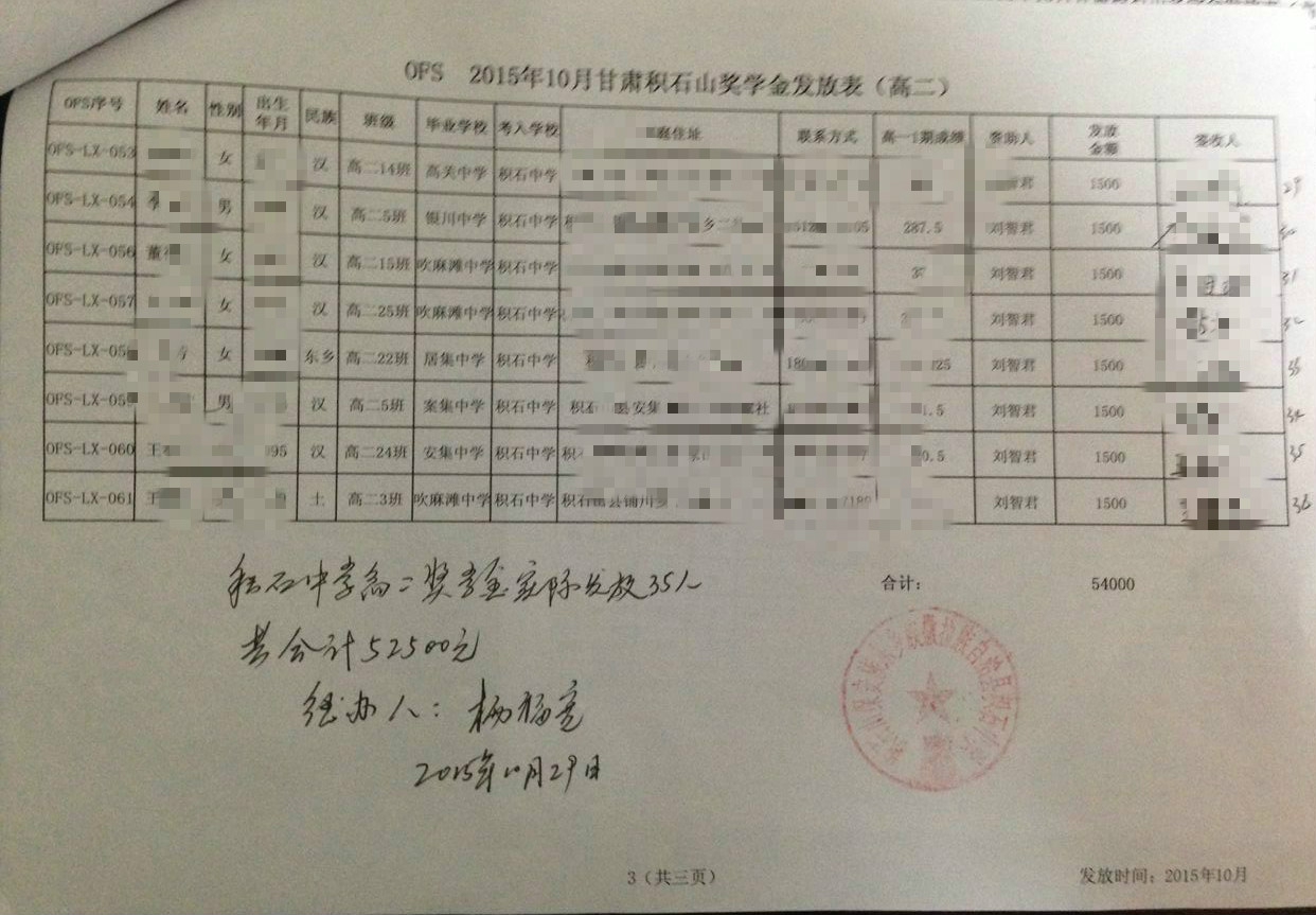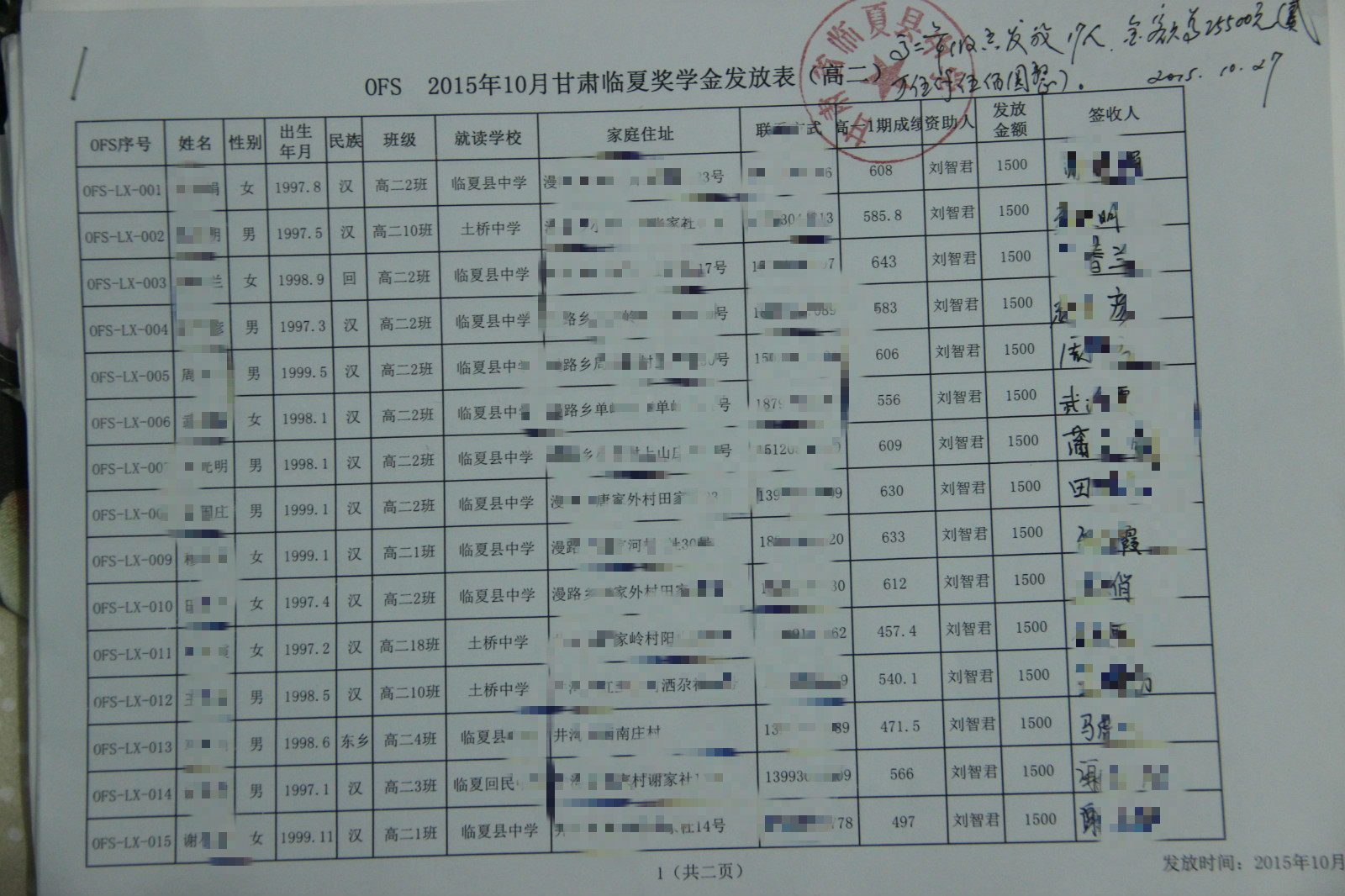 [公 示]2015年10月甘肃省临夏县及积石山县高中生奖学金发放公示 [复制链接]