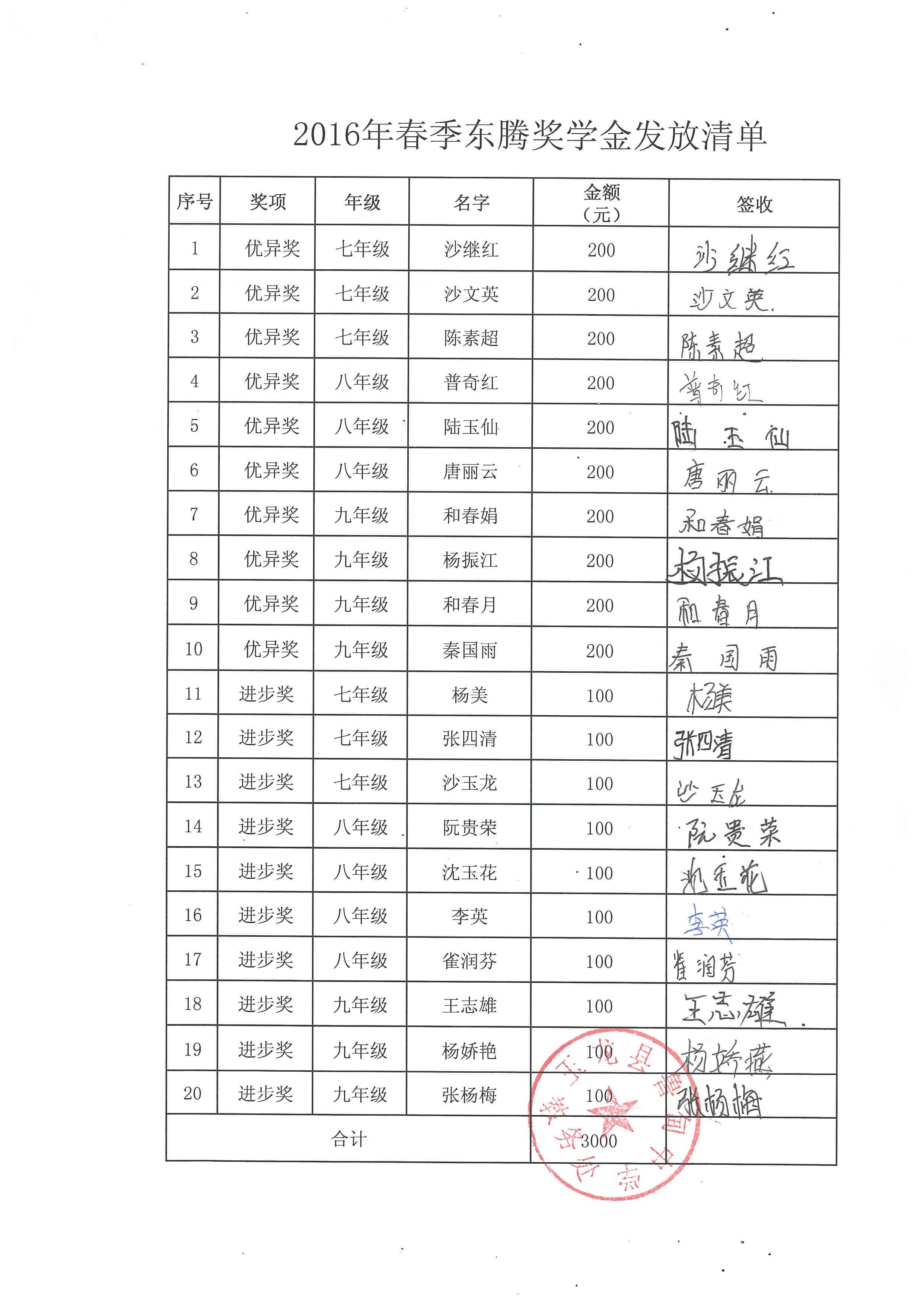 “东腾文化奖学金”奖励基金为奖学金项目的常设基金,2015学年下学期获奖学生名单及奖金发放情况如下: <#h,_WP*