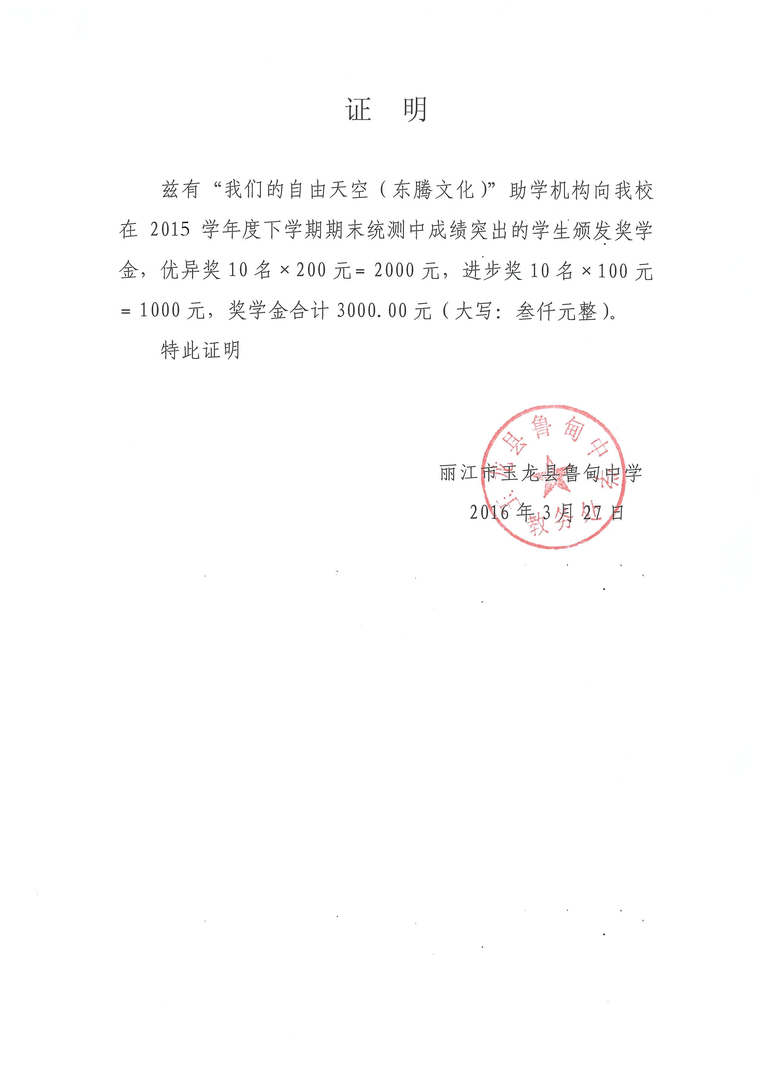 2016年春季玉龙助学走访已结束,感谢东腾文化对山区孩子学习的支持和激励。 FC] *^B