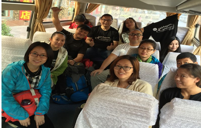 8点集结,9点准时坐上了去往鲁甸乡的车,三个小时的路程,一路驶向群山环抱中。倒是队员们个个精神头十足。 CMn&1