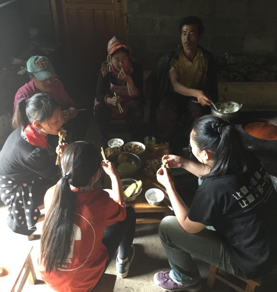 接着,是走访环节,我们继续分成两组,分头走访。总共走访了8户学生,却发觉了一个普遍的现象,其中7户学生都是单亲或是无父母的,不是跟着爷爷奶奶就是外公外婆。细问之下,很多因为山里的生存环境艰苦,因为贫穷,都选择了出走。而少数民族有个特点,男的可以入赘!所以,一旦母亲走了,父亲则会改嫁,于是就留下了小孩子与长辈生活这样的情况。更多的父母一旦离开便不再负担对子女的抚养义务,家庭的不完整,情感的缺失,对于孩子成长的影响,比起眼前所看的贫穷,更令人痛心! _): V7Zv