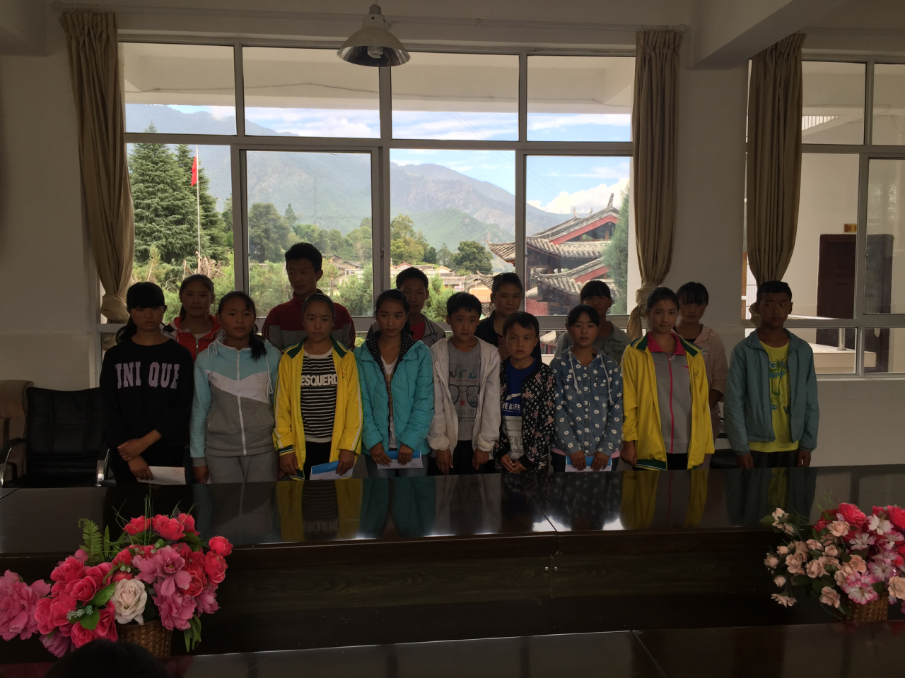 今天是最后一天在丽江的走访,经过前五天的学生家庭实际走访,今天要集中见到学生本人,并且将奖学金助学金发放到位。我和徐静也是第一次独立担任发放任务,一共有民族职高和白沙中学两个学校。今天发放的学生都是前几天我走访过的家庭,第一次见面居然就有些熟悉的感觉。能够读到高中,对于这些农村孩子来说已经是非常不容易了,也可以看出他们是非常努力的,各科的考试成绩也非常优秀。各队走访完毕之后回到客栈汇总数据,完成全部的走访任务。 V2?&3Z) W