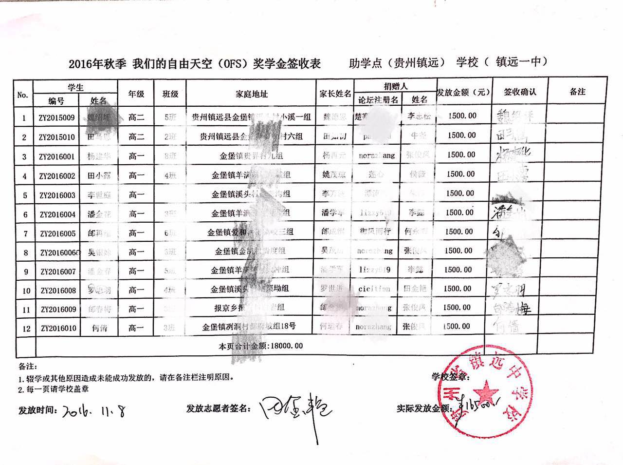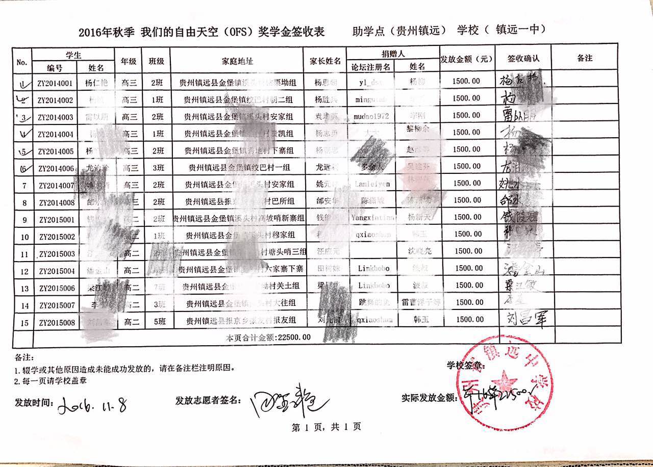 [公 示]2016年11月镇远中学奖学金发放公示 [复制链接]