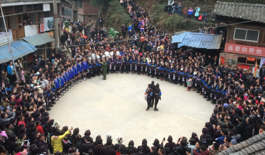 42M3c&@P Ue7~rPdlR 合拢宴的地点,如招待个别亲朋,就选有客人落脚家或堂 屋走廊较宽的人家举行。村寨重大活动宴会或招待客人时的合拢宴选在款坪上等宽敞的公共场所,各家各户拿出饭桌、或用洗干净的木板连在一起,摆成长龙式的宴 席,参加宴请的人员坐到桌席两边,宴席有长几十米至一百余 米。不论是招待亲友合拢宴还是村寨的合拢宴,菜肴、酒水均 由各家各户自办自带。由于餐具菜肴都是大家凑拢来的,所以又称百家宴。
