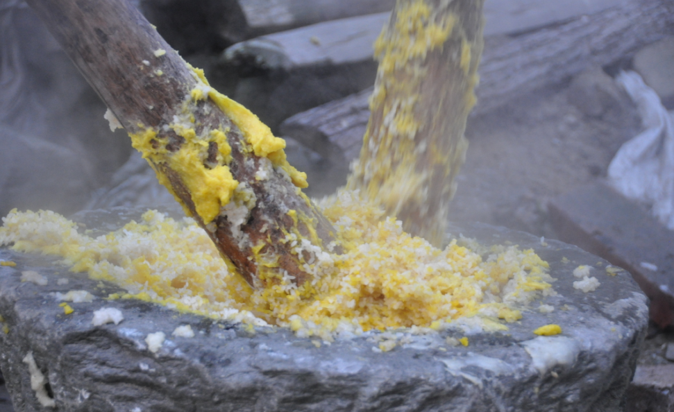 #nz$RJsX HDxw2nz*R 把糯米放进石臼中,用大木槌用力捶捣。