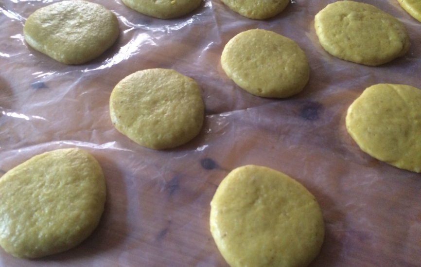 " < 糯米捣成泥以后,取出放在桌子上,乘热揪出拳头大的米团,压扁成饼,再用门板加重物压住,等糯米凉了就成型了。