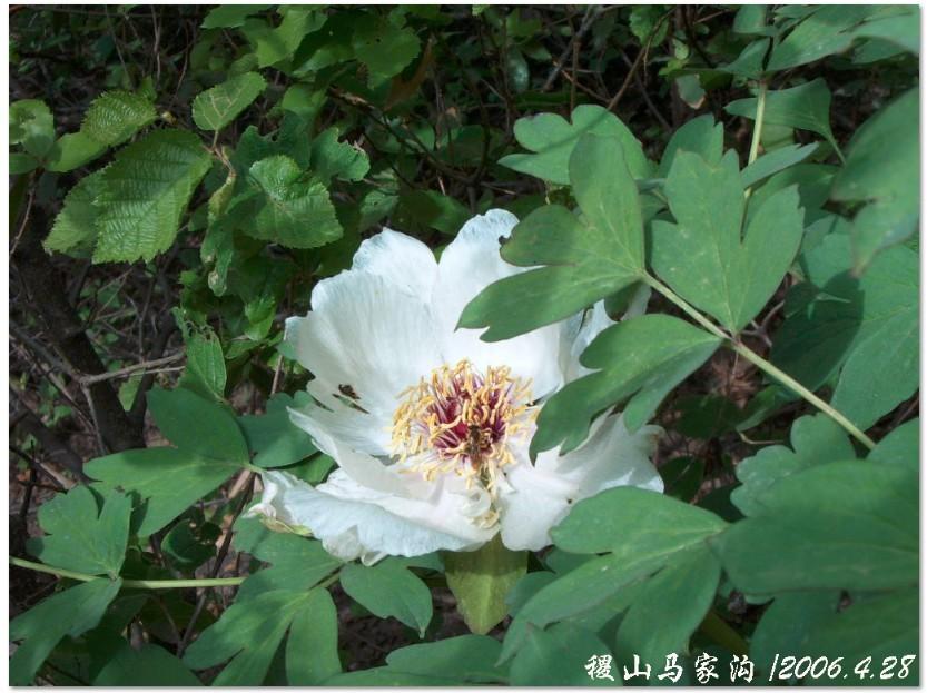 "gI-S[ ;WN%tI) 野外考察过程中,也会遇到一无所获的时候。第一次去华山,在景区管理处的安排下一位向导带我上山,虽然他是景区工作人员无奈不认识野生的牡丹,也没有听说过哪里生长有牡丹。所以一整天的时间,我们饱览了华山的险峻,却不见牡丹的踪迹,由于时间紧迫,后面的行程都已经安排好了,只有带着遗憾期待再次来。查过标本,华山确实是有牡丹存在的记载。我想一定会找到。第二次很幸运,遇到一位年长的景区工作人员,在他的引导下我们很快找到了牡丹的生长地。华山号称第一险峰,向导所知的仅有这片长有牡丹的地方就在一块非常陡峭的石壁下,离路边还有七八米的样子。本来我想自己去采,因为我只需要几片叶子和一株标本就可以,几位大哥执意说太危险,我不能去,他们帮我去采。他们几乎是全身贴着石壁爬过去接近那丛牡丹的。结果,好心的向导,把七八十米高的几株矮牡丹连根全部给拔起了。心里感到很愧疚,本来就稀少的牡丹在华山上又少了几株。
