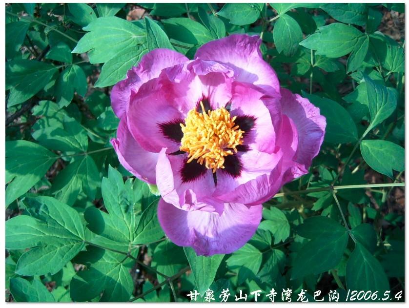 ~m=Z>4M B^dMYFelJ 秦岭山中的紫色诱惑 6zU0 8z0- 在陕西师范大学任老师的帮助下,顺利在甘泉县劳山下寺湾林场找到了紫色花瓣的紫斑牡丹,大家都很兴奋。牡丹是灌木,有“长一尺退七寸”说法,就是说每年春夏生长季节如果长一尺,最后秋冬季只能留下3寸左右的木本。在秦岭山区的太白山发现了一人多高的紫斑牡丹