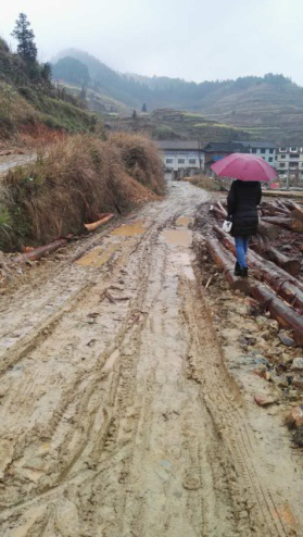 独坡乡作为全国贫困县通道县的下级乡,和通道县城相比,独坡乡的条件就差了很多。虽说村村都有通路,但不少路其实只是乡间的泥路、田间的小道,更有不少人家靠山而居,需要抓扶两旁的灌木一路攀爬才能抵达。走访期间春雨不断,满路湿滑泥泞,很难想象在这样的环境下,村民们日常都是如何出行的、小朋友们又是如何往返求学的……