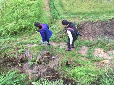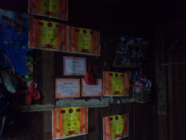如果在中心校住校就读,日常有老师管束,可能情况会好一些。但正如前面所说,住校的食宿开支,对当地家庭来说,是一笔不菲的开支。如我们在家访中就有遇到一位姓杨的小朋友在上岩的一座“郊”山上。从上岩完小到这名小朋友的家里,需要先陡峭的山坡下到村里主干道上,一脚深一脚浅得踩过泥泞乡村路,入仅容一人通过的羊肠小道,最后攀爬60度两边没有扶手的泥坡路,几乎是连爬带滚,我一起走访的Tina在陪同老师的双手逐一搀扶下艰难得走到资助的小朋友家里。家访时,家里老人告诉我们:家里有两个孩子,除了这次OFS家访准备资助初三年级的哥哥,是在独坡乡中心校读书(住宿),家里还有一个四年级的妹妹在上岩完小读书(走读)每天,妹妹就是这样风雨无阻得来回村小和里之间,平日天气好的时候,单程需要半个多小时。一般晚上7-8点晚自习结束,回到家里就要到9点了;如果我们这样遇到下雨天还要腾出一只手来拿雨伞即便是常住在这里的当地人出行也是非常困难的。问及为何不把妹妹也去中心校住校读书,爷爷回答得挺直白:家里供一个初三的住生已经是捉襟见肘,再支付另一个小孩的住费用实在有点困难;何况是女孩子,随便几个字成了,还是可能有的受教育的机会让给成绩更好一点的哥哥……
