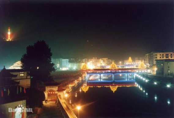 和事先预想的略有出入,通道县没有全国扶贫县的困顿破败,相反其整体县城建设得颇为现代化。城市主干道干净整洁、两旁商铺林立;在县城中心的河道上,按照仿古的式样建有侗族风雨桥。在华灯初上的时分,风雨桥挂的彩灯也陆陆续续得亮了起来,整个小城平添了几分古朴的味道~