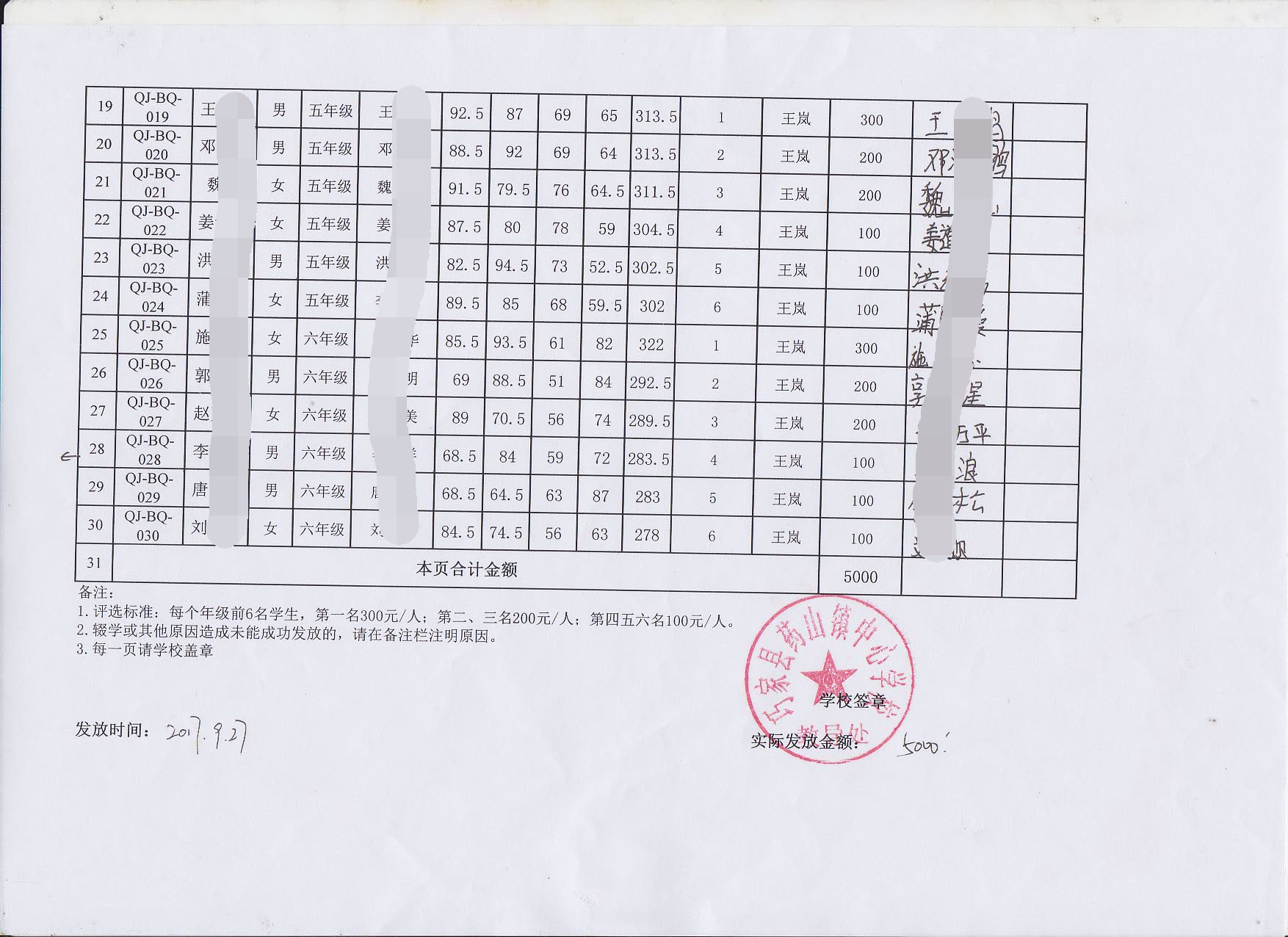 为保证发放工作的公开公正透明,特将学生签收表公示如下: c@Br_ -