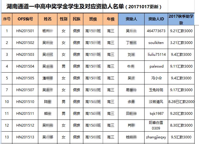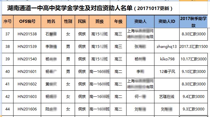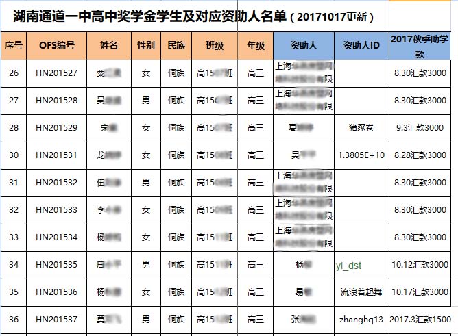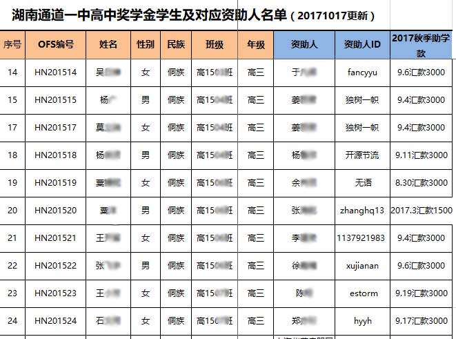 [公 示][奖学金]2017年秋季湖南通道奖学金汇款确认 [复制链接]