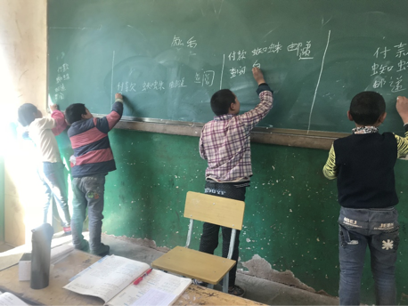 刚开始他们最讨厌被老师点名回答问题,不喜欢报听写,后面和你熟了,跟疯了一样,报听写回答问题都要抢,没点到他还不高兴。六年级的同学没有书,都是手抄在本子上去看,非常的辛苦。