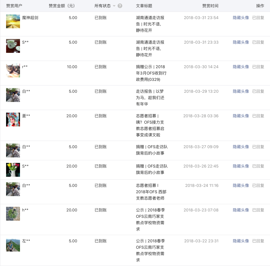 公示 | OFS微信公众号3月赞赏捐赠款项公示 ¥487 [复制链接]