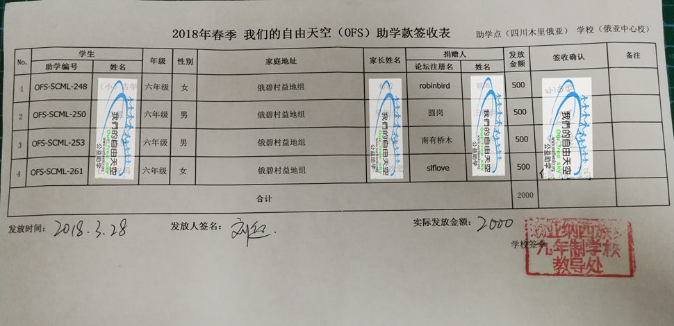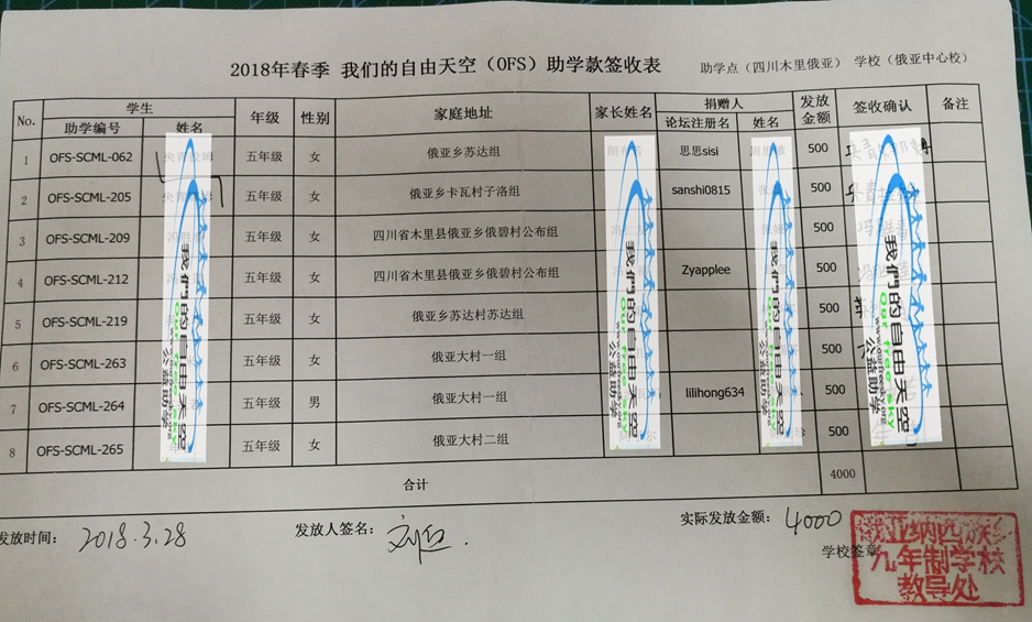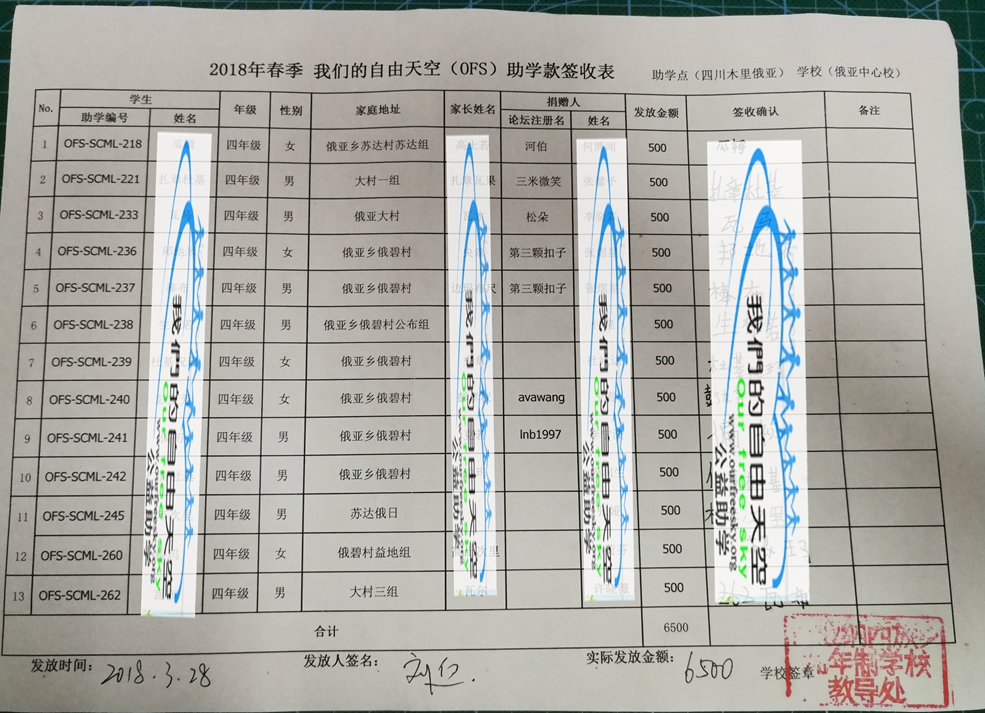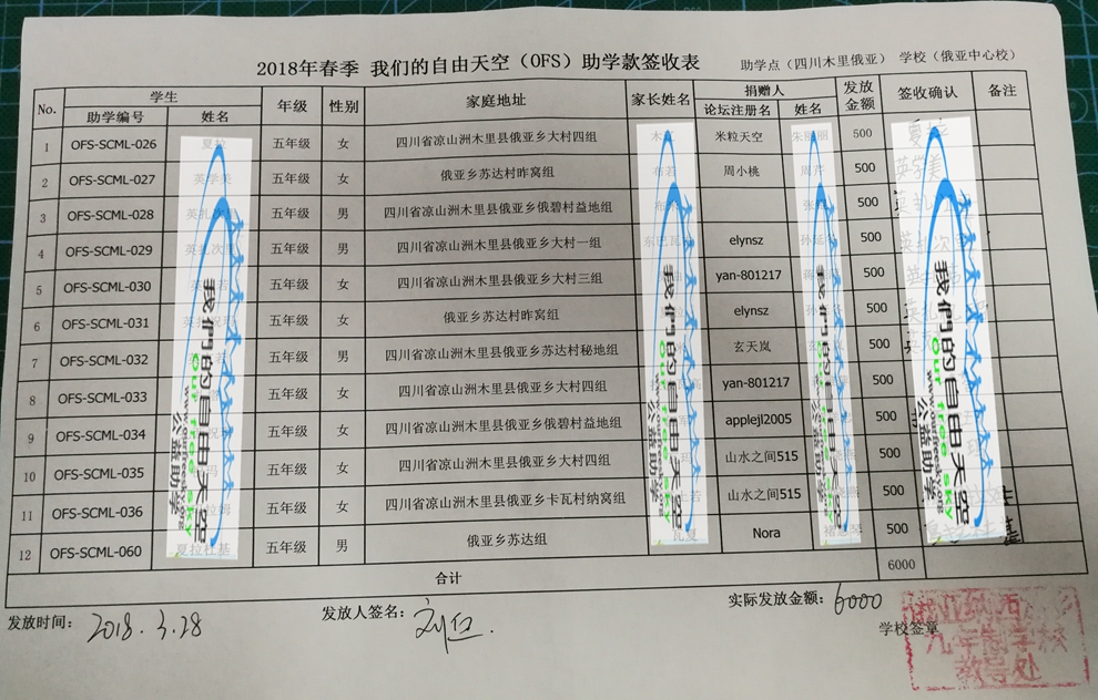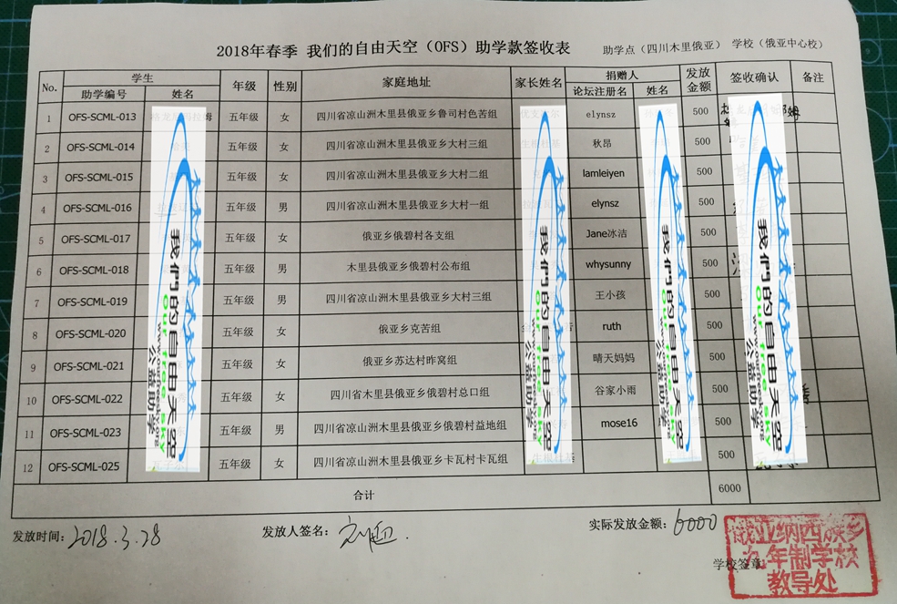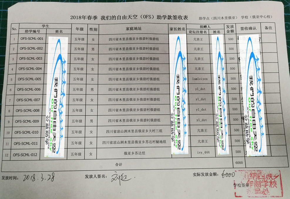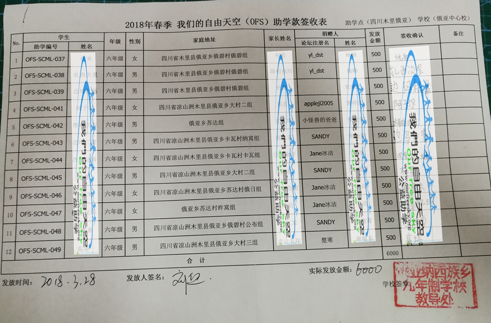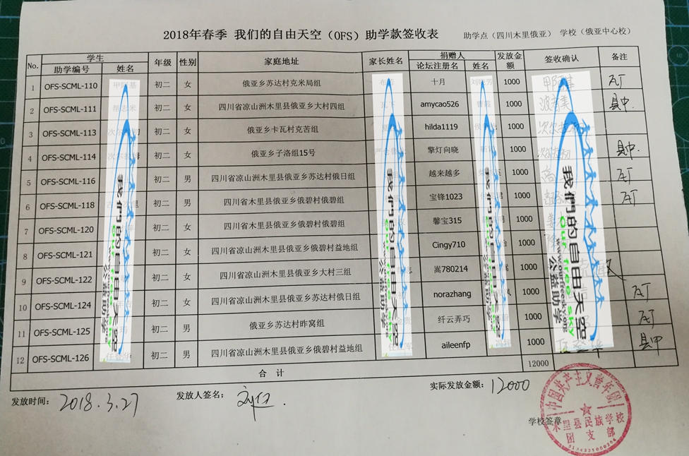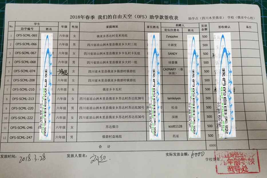 2018年3月24日西昌出发木里发放助学金、高中奖学金。高中奖学金28500元,初中助学金103000元,小学助学金53300元。 =PHIpFIuk