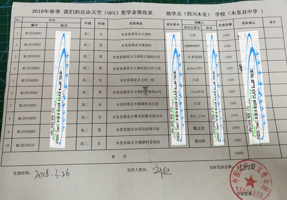 [公 示]2018四川木里奖学金、助学金发放公示 [复制链接]