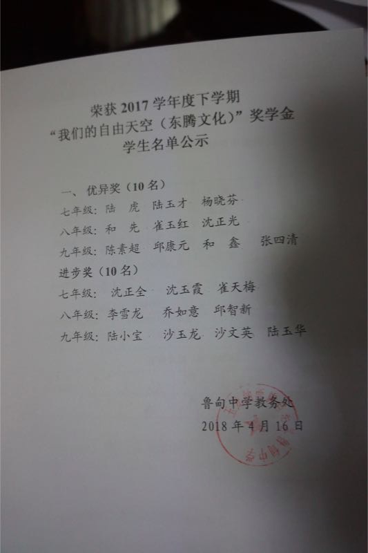 [公 示]2018年春季”我们的自由天空(东腾文化)“奖学金发放公示 [复制链接]