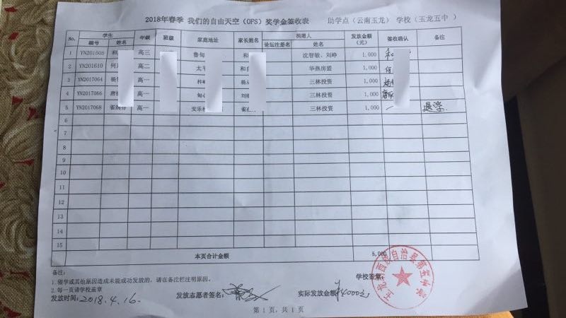 OFS走访志愿者在2018年4月16日-18日对云南省丽江市玉龙纳西族自治县鲁甸乡助学点进行了走访工作,本帖针对鲁甸助学点初中升学奖学金发放工作做具体阐述。 !vY5X2?tr,