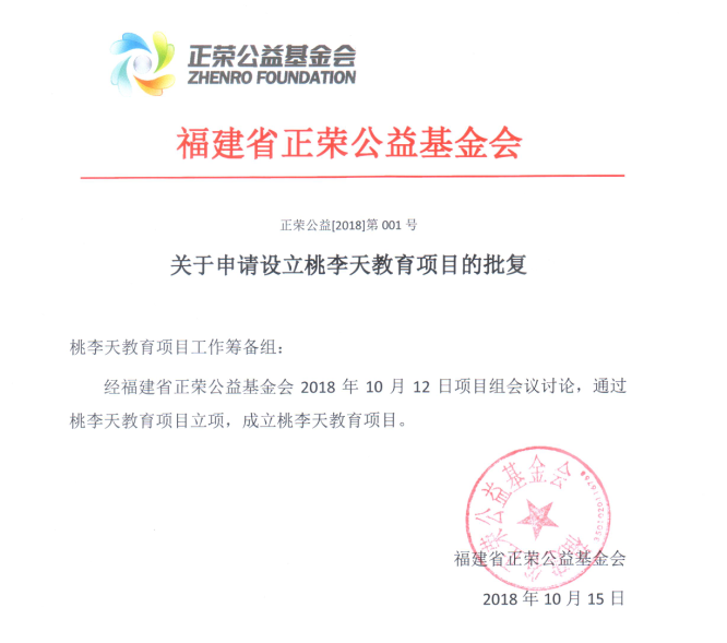 正荣公益基金会除了进行项目走访和跟踪之外,还将对项目的传播、财务部分进行支持。该项目凡指明捐赠到桃李天教育项目的外部资金,正荣公益基金会承诺做到专款专用。 M ' %zA;Wl