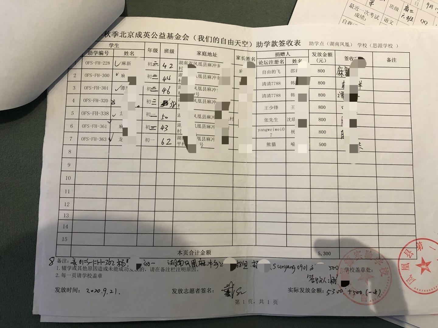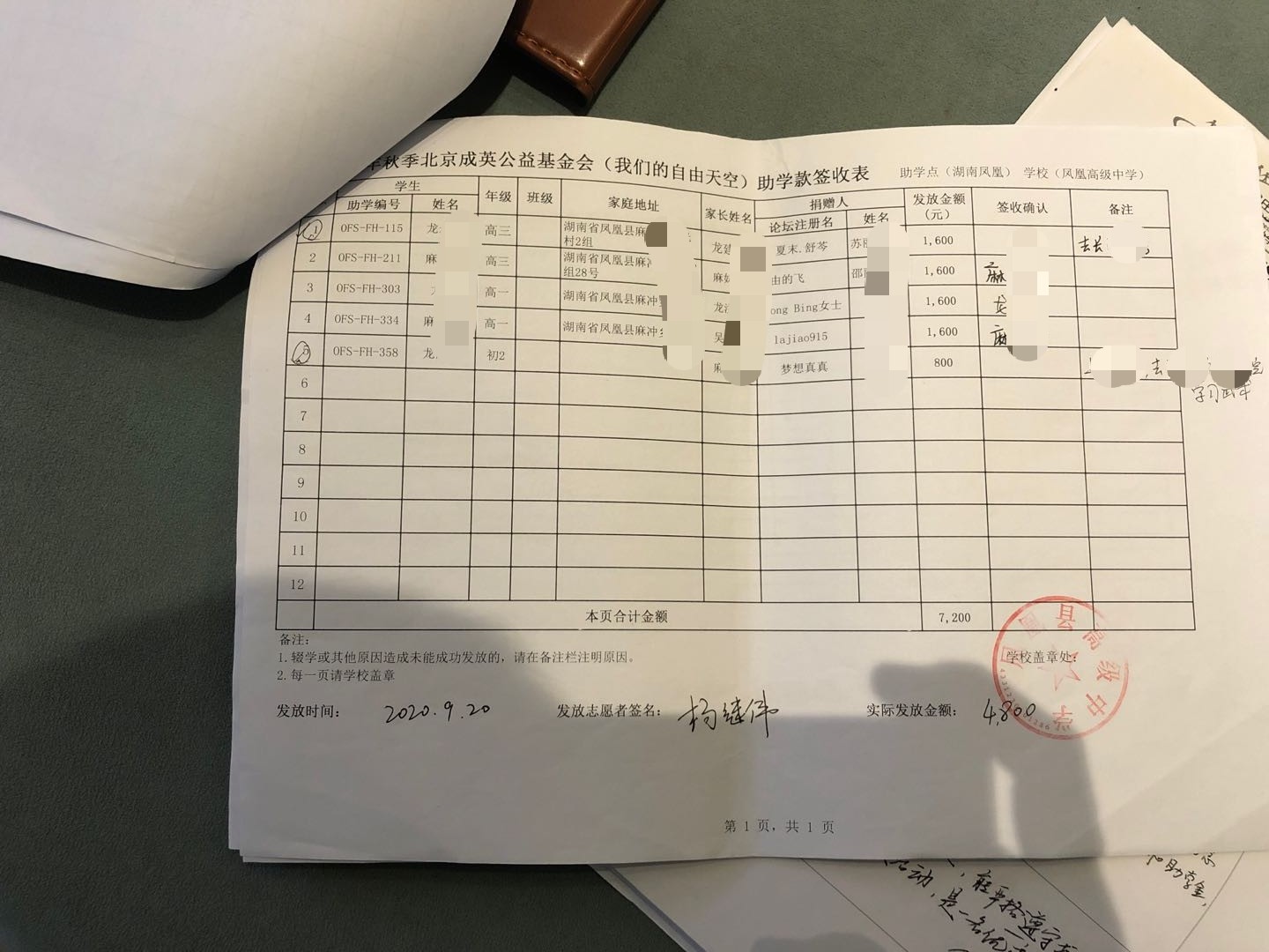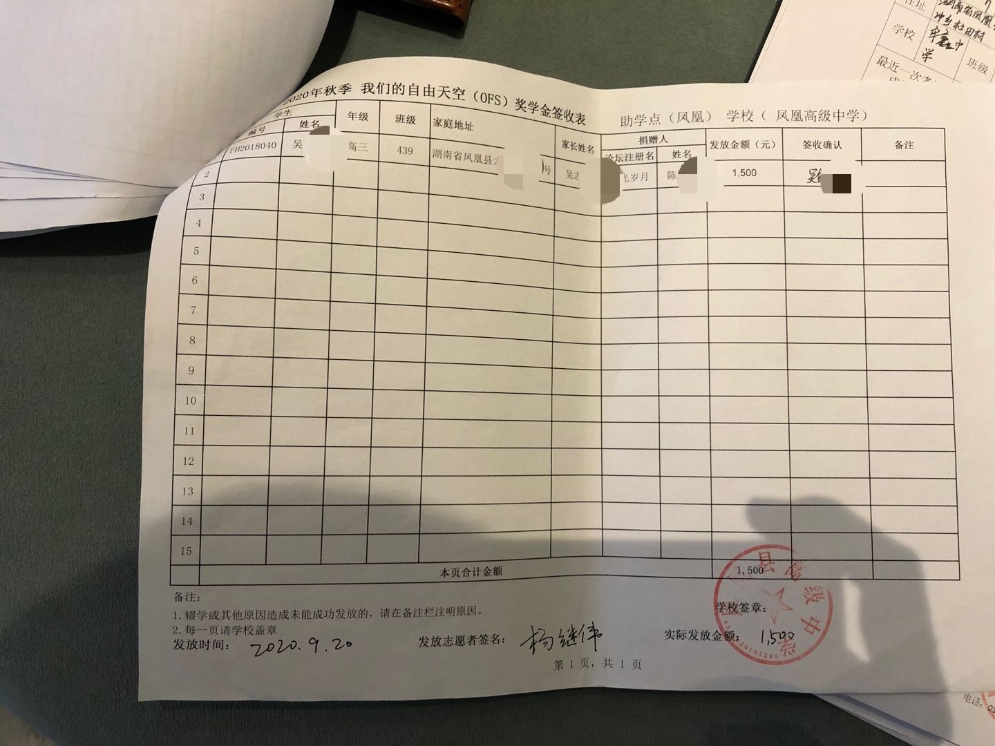 (为保护孩子权益计,孩子的真名和地址在公示中隐去,原版文件将发到各资助人邮箱,如有疑问可发送邮件到:[email]fenghuang@ourfreesky.org