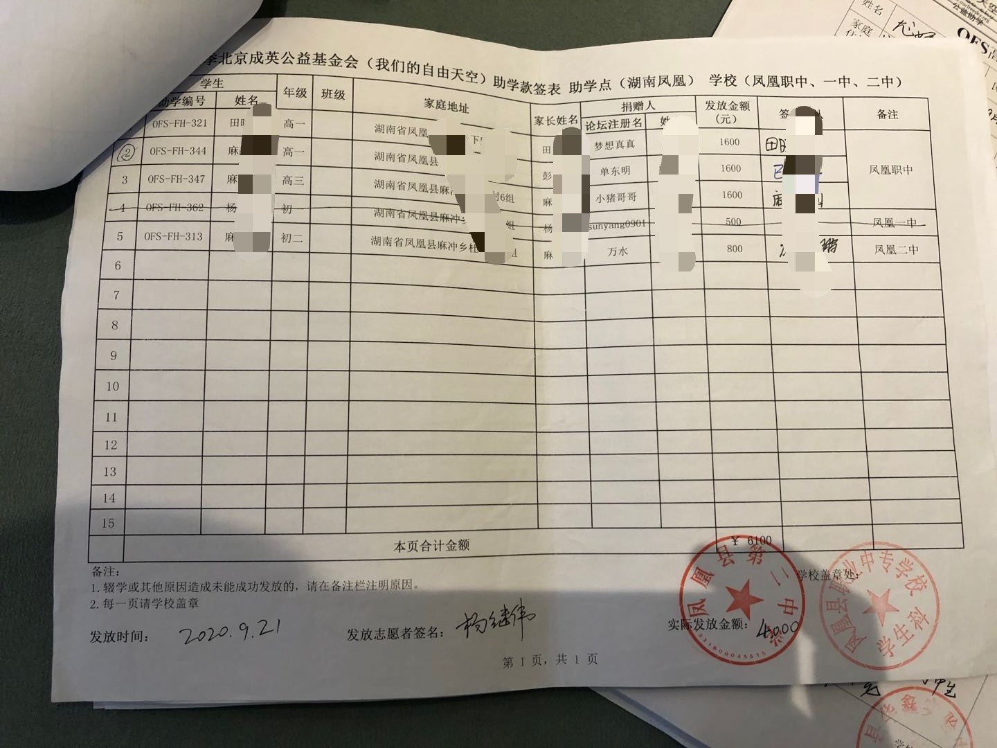 2020年秋季湖南凤凰助学走访顺利完成,在此,感谢51名学生的资助人、5名走访志愿者、凤凰工作的老师们!