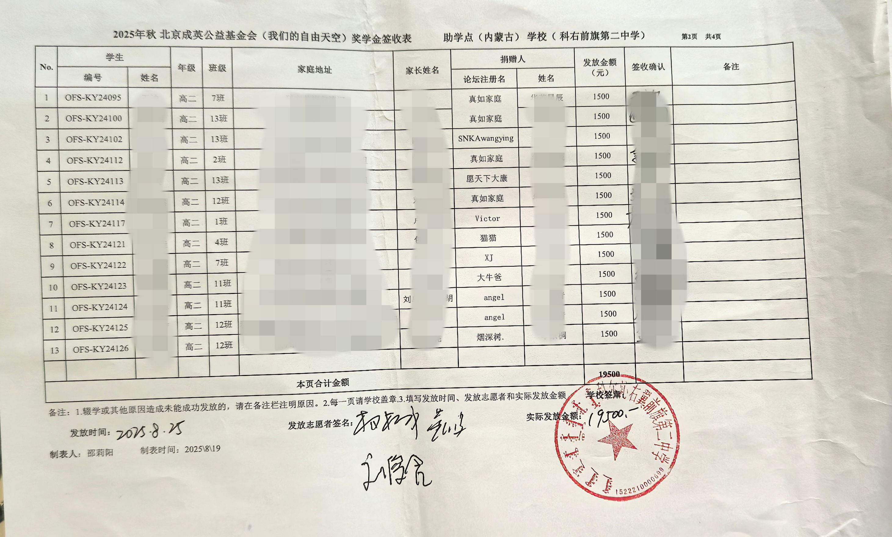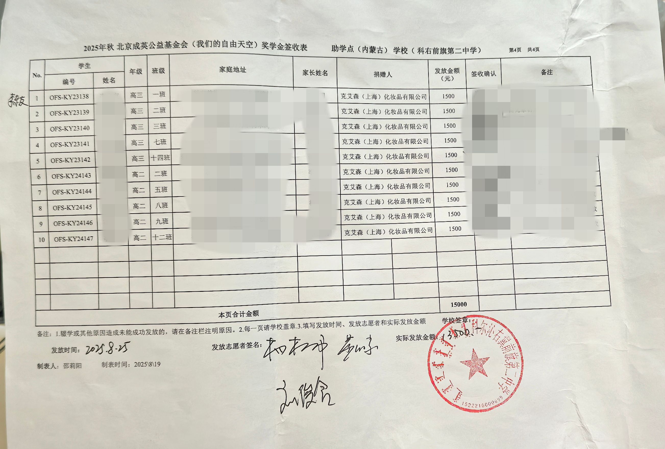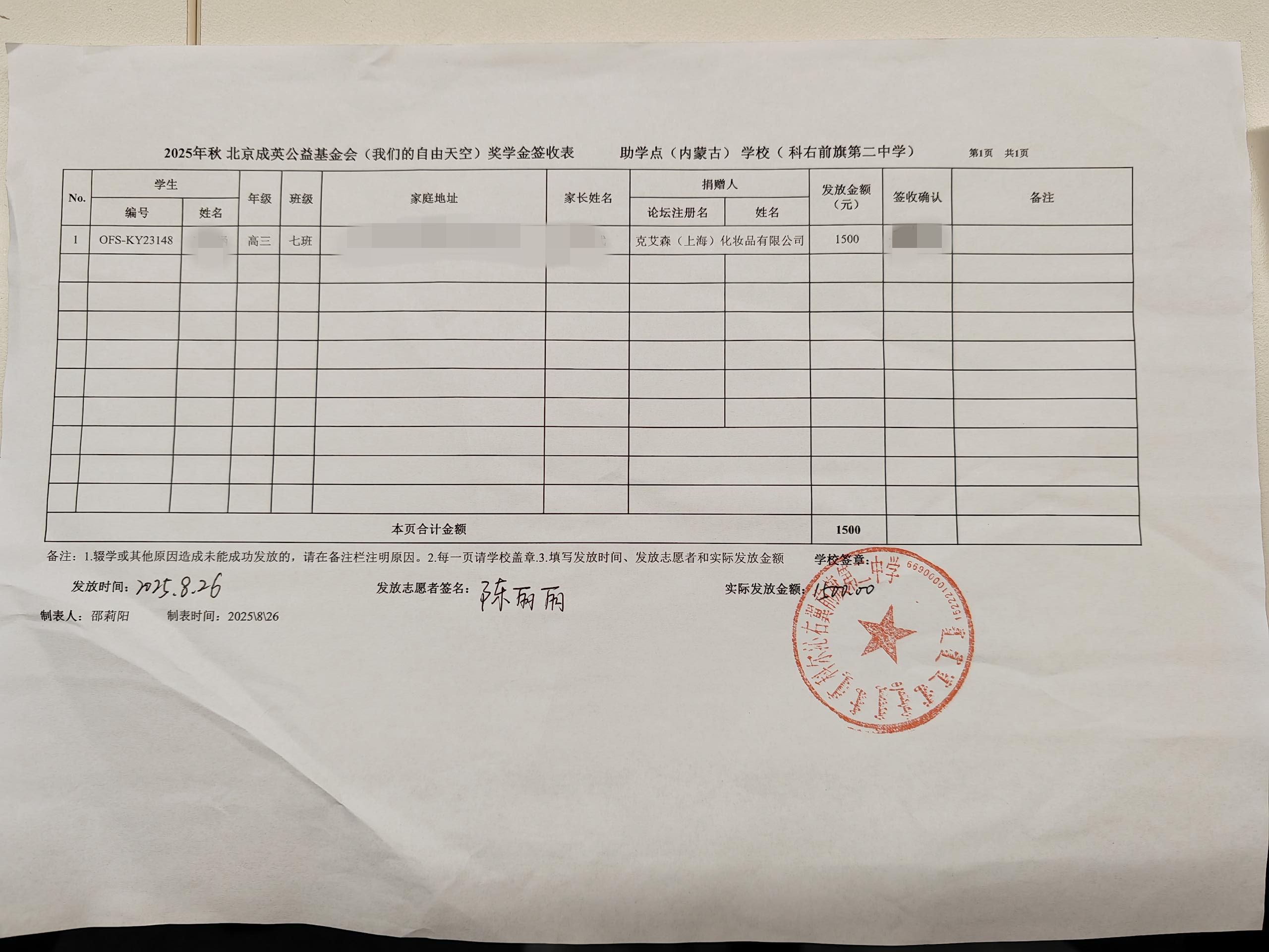 2025年秋季内蒙古科尔沁右翼前旗奖学金发放于8月25-26日顺利发放完成。