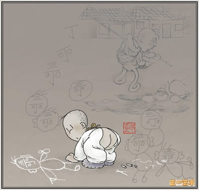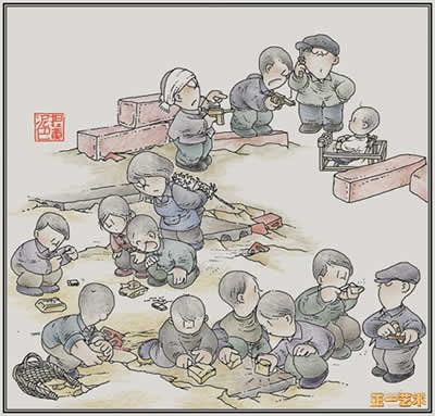 画老头--印象中是一边画一边念叨着歌谣,可惜如今已经不记得词