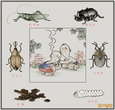 捉虫虫--我只捉过蚂蚱,抓住它的两条后腿它就不住地“磕头”。