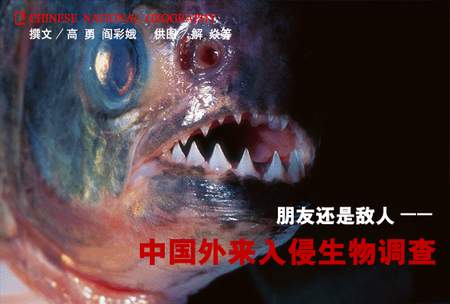 2003年初,一个冬日的午后,我们走进北京海洋馆,参观经过处理的食人鲳。不久前食人鲳曾是人们争相参观的热宠,它们撕扯活鱼的景象不知让多少人心惊胆战,号称“水中狼族“。但此刻,它们却只有一动不动地躺在冰柜中,睁着无望的双眼。关于食人鲳的报道随着它们的沉寂渐渐低落。然而,制造轰动的始作俑者虽已沉寂,关于外来入侵种的思考却不会随之停止。人们为什么对它们如此敬畏,甚至都不容它们生活在小小的水族箱内,难道仅仅是因为它们生性残暴吗?