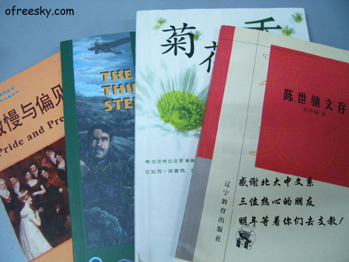 那天去北大一个朋友那里拿了一些捐赠的图书,这里发几张照片:)