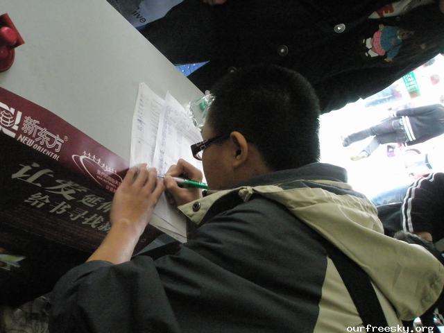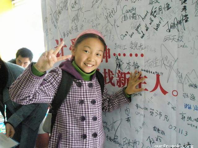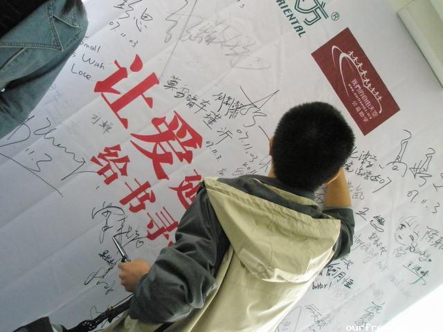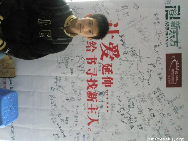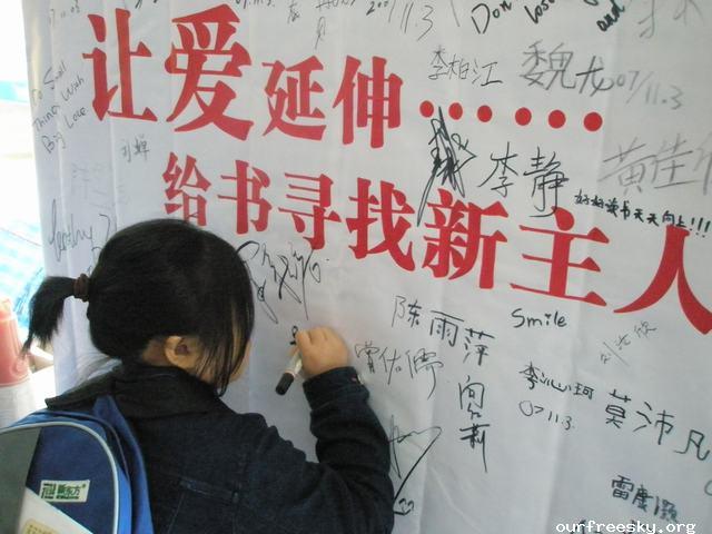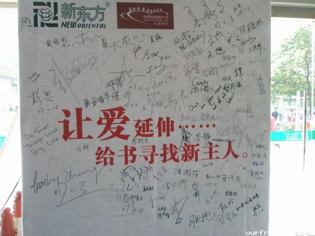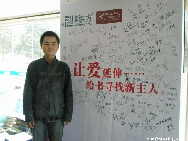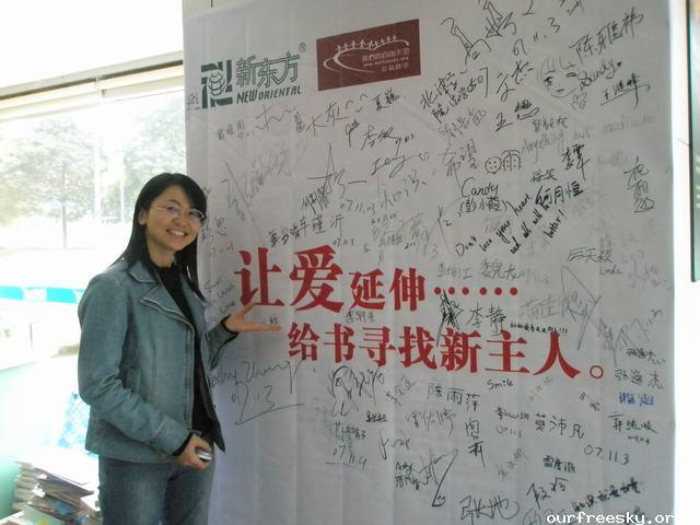 继“我们的自由天空(Our Free Sky –OFS Volunteer Organization)”志愿者组织于2007年6月17日、8月11日和10月20日在北京植物园、海淀区太月园小区和北京理工大学的三次爱心捐书活动之后,11月3日,OFS来到了长沙新东方学校,继续为西部山区的孩子们募捐书籍。