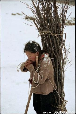 他们用瘦小的身躯在雪天肩负百斤柴火