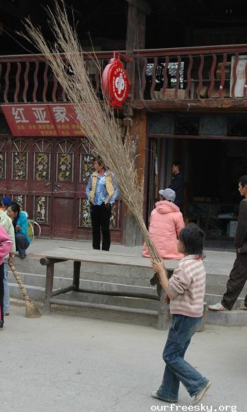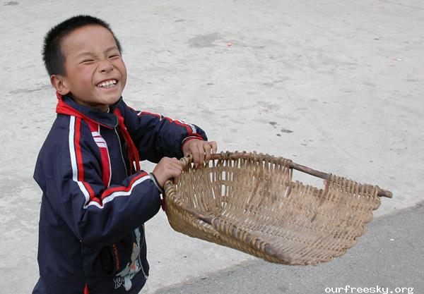 今天下午学生们都来学校了。学校开始有点人气了,之前几天学校只有几个老师,很冷清。一件事让我很感动,就是这里的家长送孩子来上学。学校的要求是四到六年级需要住校,所以很多学生会带着自己的被子来学校。如果这样的事发生在大城市,很多家长会开车送孩子来学校,而这里的家长却是和孩子一起用一种这里常见的箩筐背着被子和生活用品来学校。一般都是这样的情景,大人背着大箩筐,上面是很重的棉花被子,小孩子背着小箩筐放着些书和生活用品跟在后面。一边走一边大人告戒着孩子要注意的事,就这样走几十里山路。劳累混合着家庭的温欣。