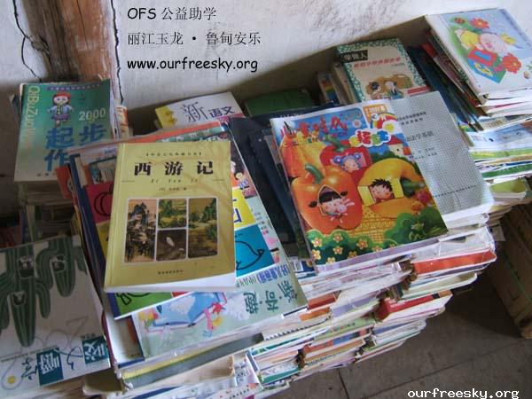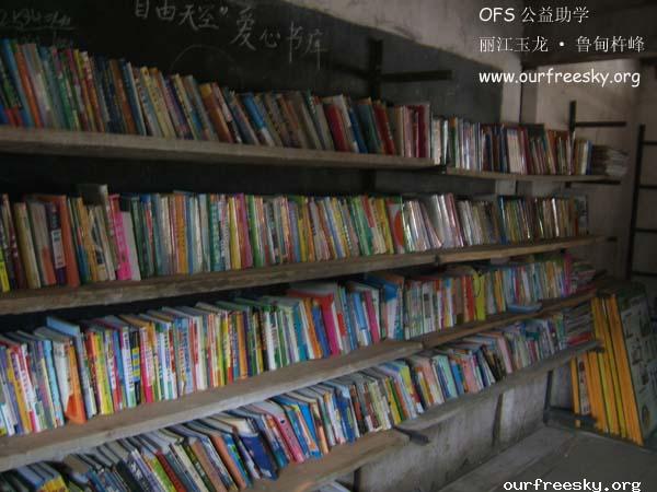 n 正好是周五,到杵峰的时候学生还没有放中午学。学校的老师先带着我们去看了看图书室。杵峰完小收到第一批图书1500册,第二批4000册,第三批的还没有整理、统计。如果是通过邮局邮寄的书籍,可以直接到鲁甸。如果是托运的书籍。杨老师他们还得专门包车去县城跑一百多公里,把书来回来,然后再通知学校,由学校把书拉回去。去年我们来的时候杵峰小学的书是暂时放在一个屋子里的,跟老师的宿舍在一排的。这次专门找了一间教室作为图书室。经过分拣、整理的书记已经整齐的靠墙摆放了四排。大概翻看了下,这些书大部分还是比较适用的,相信孩子们都会喜欢的。书架后面的黑板上用粉笔写着:“自由天空”爱心书库。学校专门安排了老师来管理书籍。每天安排一个班级轮流借阅。图书室很简陋,除了摆放在四周的书架没有任何桌椅之类的。由于照明的灯没有安装,所以白天屋子里光线还是比较暗的。杵峰完小的校长说,由于第三批图书比较杂乱,初中、高中的以及一些费报纸都在一起,所以还没有及时的分拣和整理。看见好几摞比较杂乱的图书堆在书架边上的墙角里,看上去有几百册的样子。这些书籍,千里迢迢、跋山涉水到了这里,还没有派上用场,看来当时邮寄之前没有仔细分拣。就路费恐怕也不少啊。杨老师说,由于后来的书籍都是经昆明中转然后才托运到丽江,所以,没有办法得知书籍最初是哪个地方发出的,这也造成了信息反馈的困难。去年冬天去新主完小的时候,发现新主的图书室以及图书管理是鲁甸几个学校中做的最好的。从目前的情况来看,杵峰和新主两个学校的图书从数量上已经满足,安乐、太平、鲁甸小学以及鲁甸中学等图书还需要书籍。关于图书的使用、管理以及之后的信息反馈,OFS都还没有形成自己的规范的流程和完善的管理系统,所以学校方面也很被动,这方面有待于大家一起努力。而且很多学校都没有专门的图书室,安乐的图书还是暂时放在老师宿舍里。