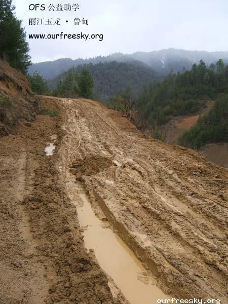 O*maE" 安乐完小停留了一个小时就往杵峰完小赶。10:40从安乐出发。没出村子多久,就让人感觉到这行车的不安全。这车子就象一条大雨,在快要干涸的淤泥里挣扎,总怕太用力,冲到山沟里面去。车轮一直在打滑,似乎很难控制。多亏开车的师傅,已经在这条路上走了几十年,所以一直很冷静的驾车。