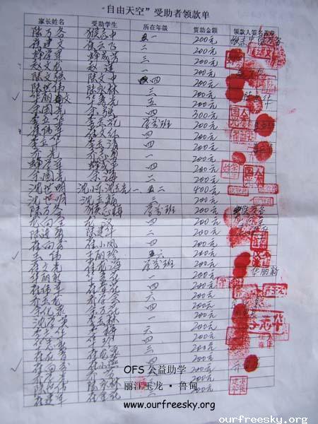 Dy@f21+ 这里多说几句,助学并不是很多人想想的那么简单的,OFS助学部门的工作人员都是跟大家一样利用一些业余时间来做点事情,参与过助学部门工作的志愿者都知道,非常的繁琐、非常的耗费时间和精力,因为助学部门的工作人员只有5人左右,他们要面对600多份孩子的资料、600多位热心的资助人、四省10多个助学点的学校老师以及家长、当地邮局等等,而且每个孩子、每个资助人都需要沟通至少5次以上,大家可以计算下,一次理想状态平均耗时3分钟,那么累计下来呢?我参与了2007年7月凤凰第一批79个孩子的结对工作,给资助人发一封mail就需要5分钟……OFS助学部门的一位工作人员私下里讲,她在负责100多个孩子结对工作的2个星期其他事情几乎没法做,感到的是压力和责任,她也理解资助人的迫切心情,也想尽快把工作做好,只是需要点时间。所以,请每一位资助人耐心一点点,礼貌一点点,让自己的爱心也尊贵一点点,大家的出发点都是一致的,目的也是一致的,这样会让助学部门的工作人员更开心、高效的为大家服务。我始终相信,尊重别人庄严就在自己心中,请尊重别人的劳动。当然,我们也一直在说,我们都是在摸着石头过河,很多事情我们都是在探索中做,有很多缺点和不足,希望我们能一起进步。