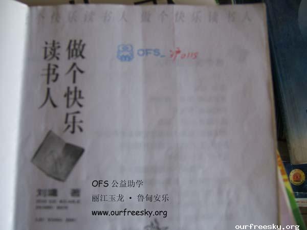 0TI+6u 图书方面由于最近几批都是在昆明经志愿者lp1976中转,所以,学校不知图书的具体来源,也没有及时统计具体数目。不过学校表示会及时做好图书的信息反馈工作。安乐完小是年后才陆续往这边安排。由于学校还没有专门的图书室,暂时放在一位老师的办公室里。看见了一本书《做个快乐读书人》的扉页上一个很可爱的logo“OFS_沪0115”。