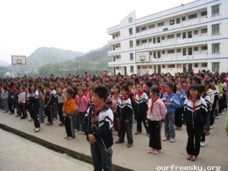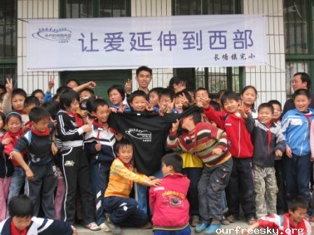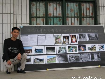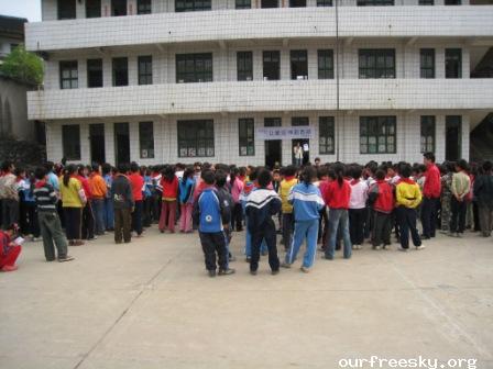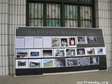 十二点左右赶到这所学校时正好赶上了学生们的用餐时间,学校已经打好了宣传条幅并且从OFS网站上打出了一些相关的图片做成了一个宣传专栏,而我的任务就是给这些学生简单介绍一下这些图片上的人和事。说实话有一些被赶鸭子上架的感觉,站在那么多孩子面前面对那么多双好奇的眼睛有那么一时半伙回不过神来。时间似乎回到了自己的学生时代,可惜有些东西一去不复返了,因为当时确实有些激动记不清自己都讲了些什么了,还算很顺利吧,孩子们的热情都很高,学校的老师也都非常的支持。