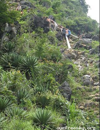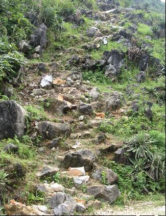 老师说弄平的路比这里还难走,而且危险很多,根本就不会有信号,一定要在那里过夜才能走完。赶紧发了短信给队长和tobaby(看吧,这时候还能发短信,等再爬上一段距离信号就断断续续的有或无状态了,队长更是一夜没信号)。