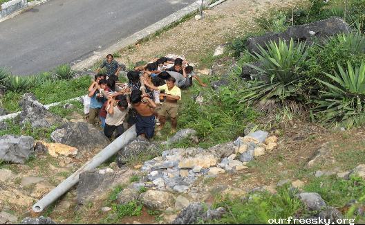 看到搬线杆的图片,突然好感动,感动那自强不息!