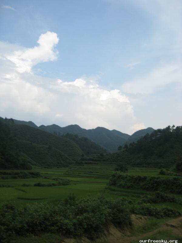 差不多五六个小时之后,我们从这片农田后面的山里走了出来.