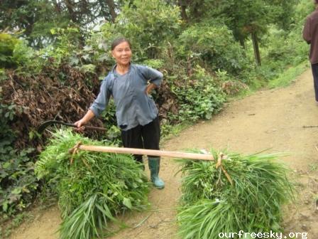 这是我和Ryancat、潘老师在路上见到三五个行人之一,看到大妈和她的挑子,让我想起了家里的妈妈.(晕,怎么看起来像我们家的亲家母了...)