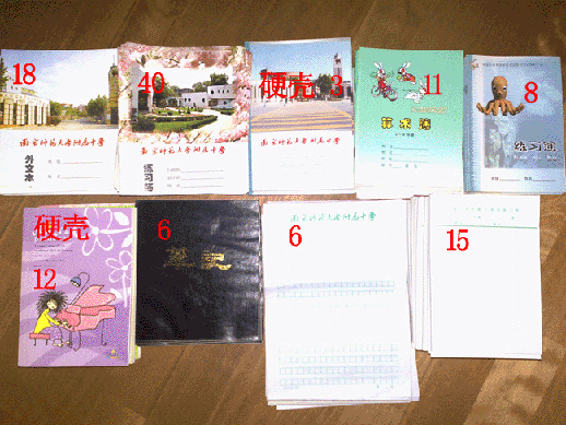 物品的类别以及数量: 练习本及信纸,总计约120本. 'iMzp]V;