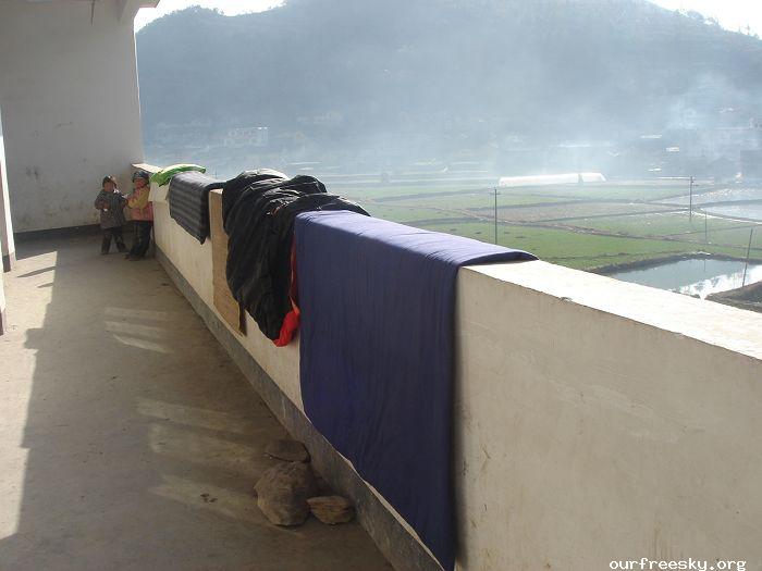 从我们来的第二天开始,就持续降温寒潮不断,冷得不行,今天发现脚趾头生了冻疮,前两天还以是磨出了水泡,今天才恍然大悟,那是传说中的冻疮,有生以来还没有生过这玩意,一直觉得以前同学生这东西那叫一个可怜啊,没想到让翻身给破了这记录了,正式加入冻疮一族,我可怜的脚趾头啊,又肿,又红,又痛又痒。好在是一个趾头,希望不要再有第二个加入光荣榜。这再次证明,对于天气不能看表象,对下届的志愿者我一定千叮咛万嘱咐要带够衣服啊。我们每天要和这拨学生娃娃斗,还要和这翻身的天斗,我和天涯彩虹说,我们绝对不屈服,还有再恶劣的天气吗,一起来吧。我们是打不倒的。给你一个月时间考验一下我们差不多就得了。
