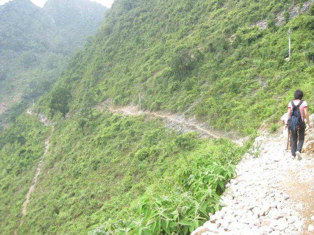接下来的几天便开始我们的任务:发奖学金,助学金,回访,走访。。。我和小侠一组,我们去的是弄平。在当地的老师带领下,我们坐上了他们的摩托车,向目的地而去,途中经过传说中的天下第一弄,两位老师还特意停下车让我们观赏一番,呵呵,很深,有些恐怖,一条不能称为路的路一直通到谷底。底下有隐约可见散落的村户(我们没有下去)。