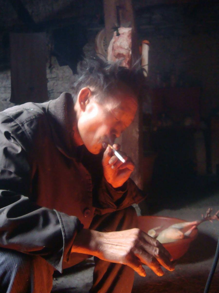 他抽最臭的烟——也就是当地最便宜的烟,喝最便宜的酒。